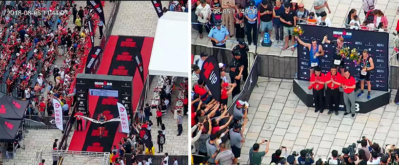 鐵人三項(xiàng)賽男子職業(yè)組冠軍沖刺瞬間和頒獎(jiǎng)瞬間(T60安保無人機(jī)拍攝)
