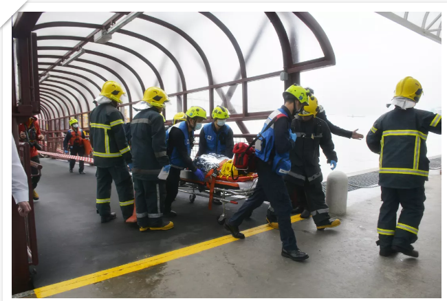 演習(xí)模擬海上兩艘游輪在海面相撞,其中一艘游輪有限度自航,游輪上船員及乘客共25人,其中有6 名乘客受輕傷,另有1 名船員于碰撞時不慎落水失蹤。另一海上游船則有船員及乘客共20人,當(dāng)中有8 名乘客受輕傷,另有2名船員于碰撞時不慎落水失蹤。