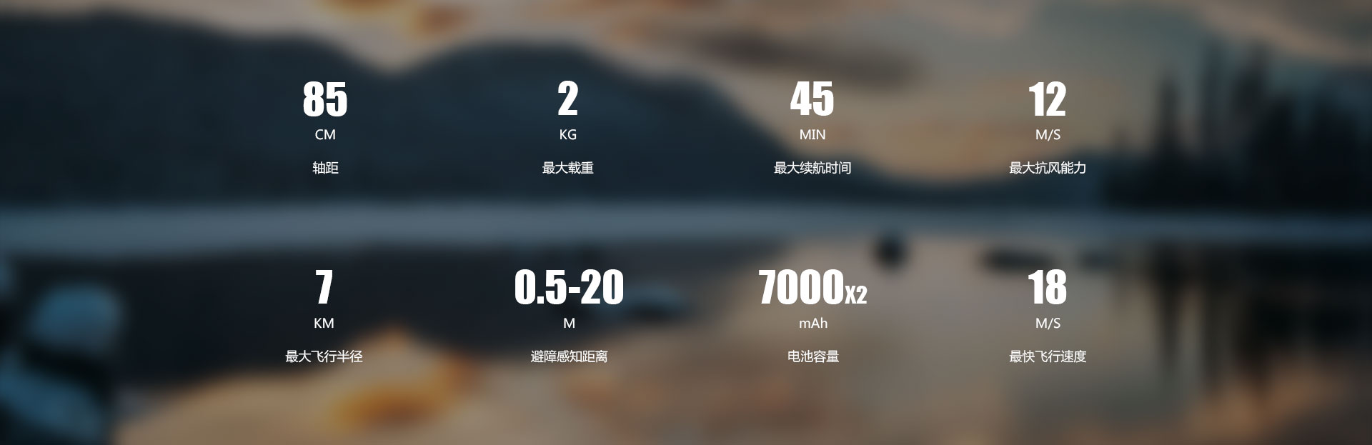 18倍變焦相機(jī)、紅外熱成像儀、喊話器、投擲平臺(tái)、雙掛載