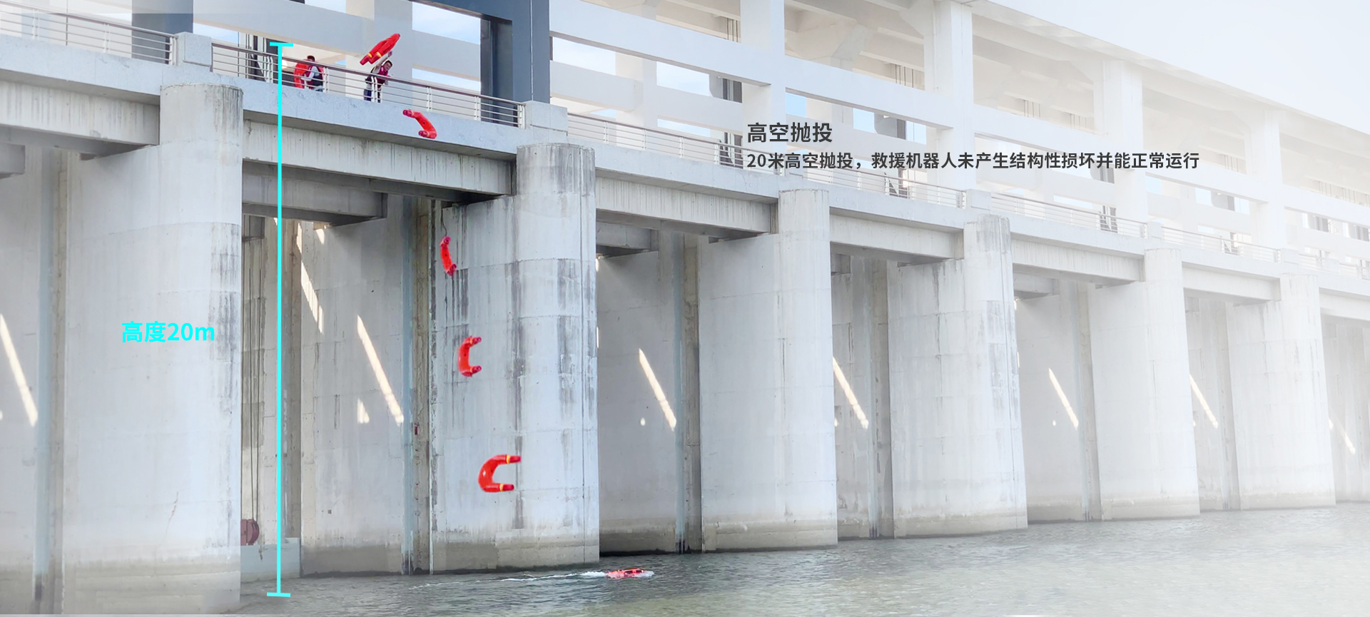 · 救援機器人可從高空拋投置水面,高度≥20米;