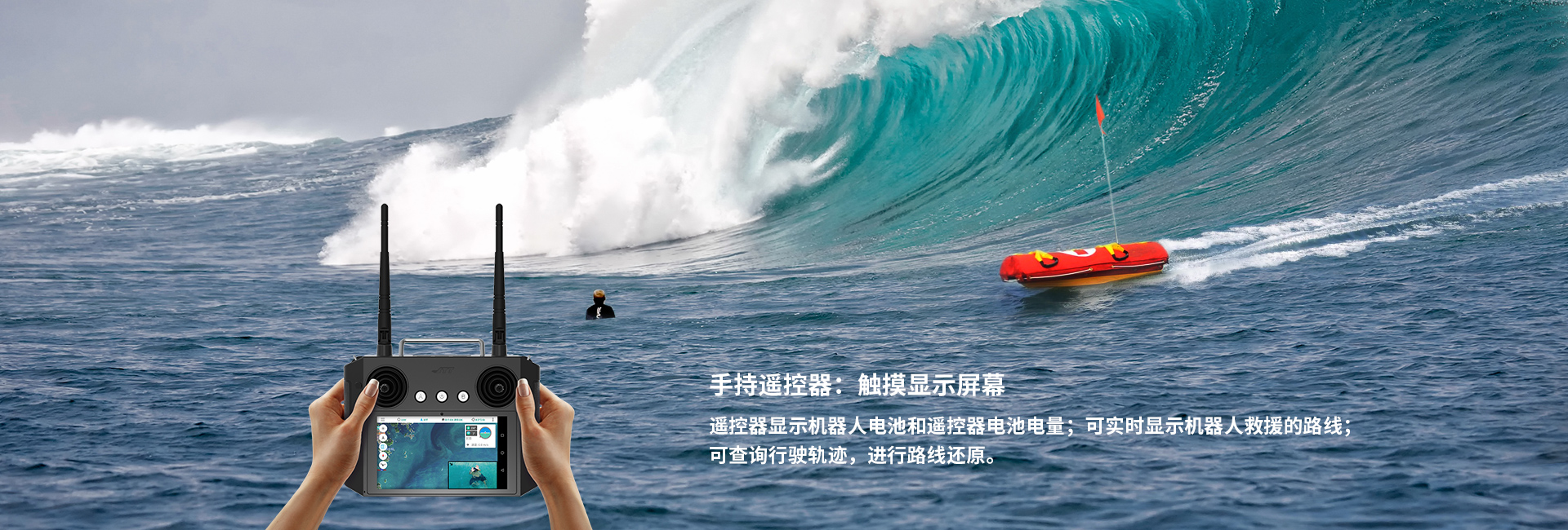 T2水上救援艇是一款可遙控操作的小型消防用水域水上救援機(jī)器人,推進(jìn)器驅(qū)動(dòng)趨于摩托艇,速度可達(dá)49公里/小時(shí),是救生員的12倍以上。具有自動(dòng)扶正功能,側(cè)翻后可自轉(zhuǎn)回正面并保持正常行駛。可抗2級(jí)風(fēng)浪,能在波浪之中靈活轉(zhuǎn)彎前進(jìn)。支持并排聯(lián)機(jī)功能,兩臺(tái)機(jī)器人可以聯(lián)機(jī)并排組合一起實(shí)施救援,可同時(shí)救起多名落水者,可以拖拉救生圈、橡皮艇或者浮水繩,為水上救援提供更多選擇和保障。適用于水庫(kù)、河流、海灘、輪渡、洪災(zāi)等場(chǎng)景中的落水救援。