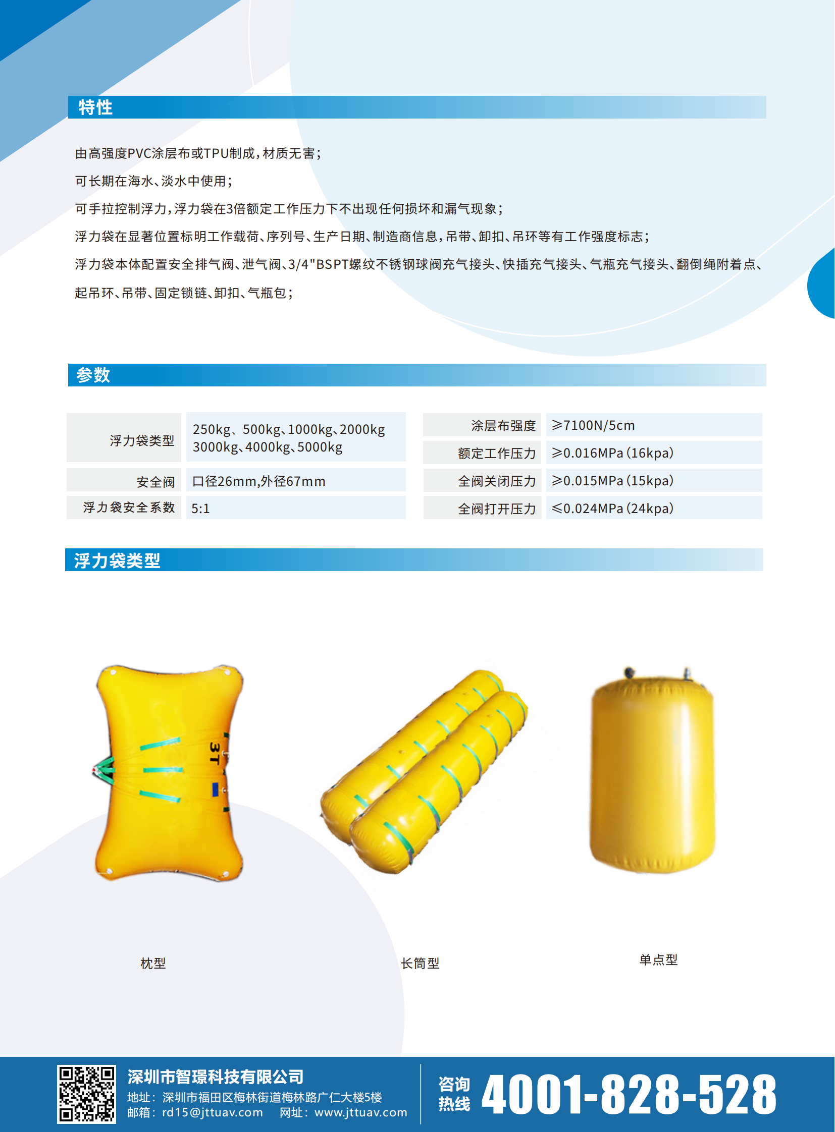 - 工作環境:可用于海水、淡水,浮力袋配有過壓防爆安全閥