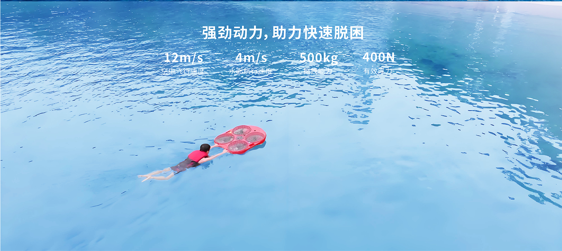 精準找到落水人員位置再次降落。落水人員可以趴在上面,也可以套在身上,憑借它的浮力