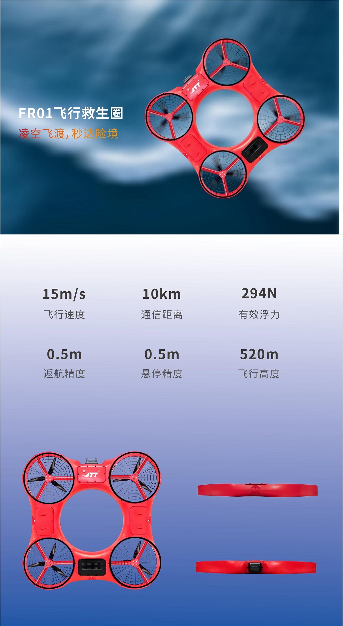 飛行高度、速度等參數可設置,飛行救生圈具有北斗定位,空中能夠定點懸停;